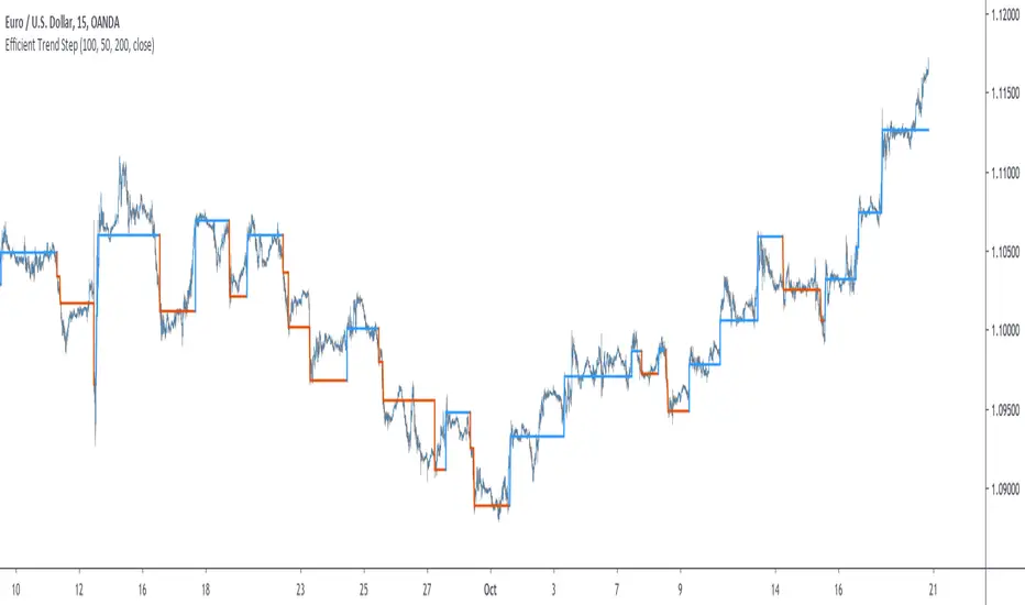 The trend-step indicator (or auto-line) was based on volatility and aimed to spot trends in an adaptive way, however the indicator was only based on volatility and didn't gave much attention to the trend, later on i would publish an efficient version of it (efficient auto-line) based on the efficiency ratio who could adapt to the trend and eliminate potential whipsaws trades, however this approach included many settings that would require changes if the user switched markets, which reduce the utility of the indicator and make it actually super inefficient.