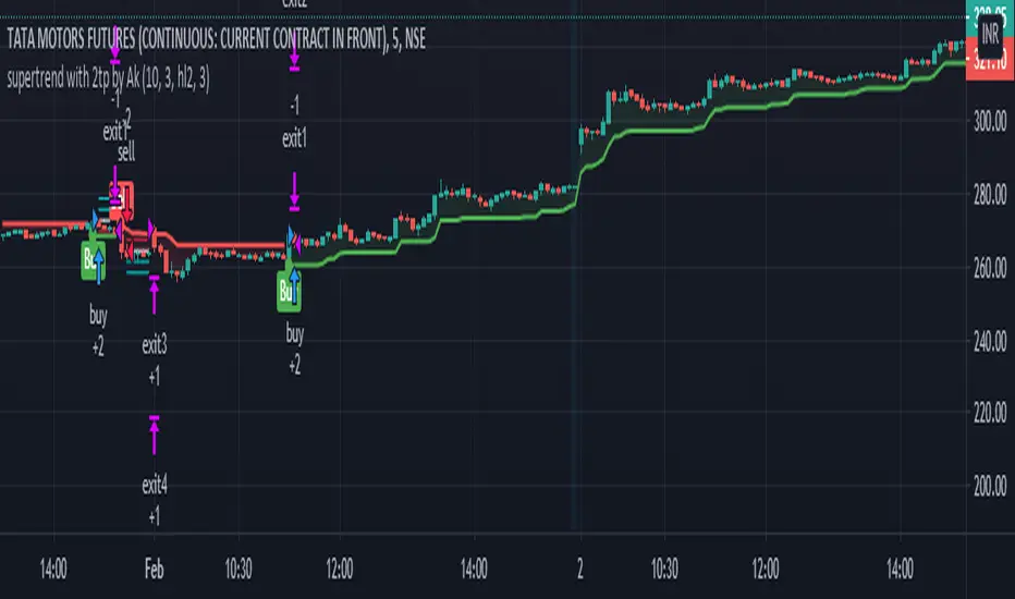 This strategy is based on two take profit targets and scaling out strategy. The entry rule is very simple. Whenever supertrend show long trade is taken and vice versa...and you have to use minimum 2 contract size