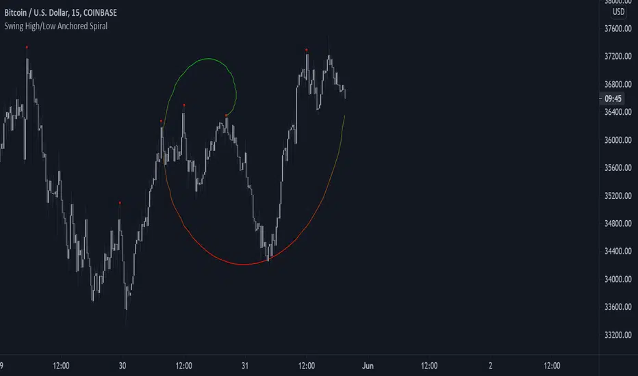 Users can determine which historical swing high/low to use as the spiral central point and can choose the number of turns it should make.