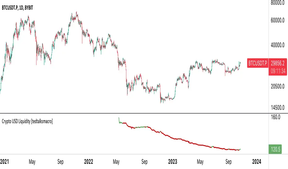 Designed to visualize the total liquidity of major stablecoins in the cryptocurrency market. The liquidity is calculated by summing the supply values of five leading stablecoins: USDT, BUSD, USDC, DAI, and TUSD. Based on the comparison of the current liquidity value with its EMA, the script colors the plotted line either green (when above the EMA) or red (when below the EMA), helping traders visually identify bullish or bearish liquidity trends.