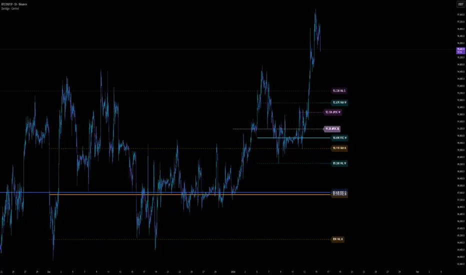 ZenAlgo - Control plots volume profile reference levels for several higher time windows and keeps those levels visible on the chart with labels and optional alerts. It is designed to work on intraday charts and uses the symbol's traded volume to estimate where the most activity occurred within each period.