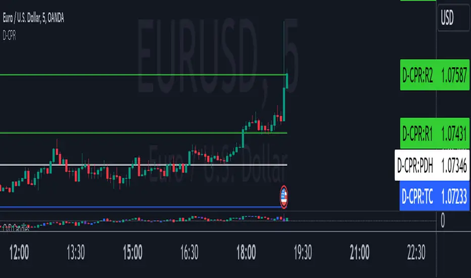 This script will plot the CPR and support/resistance lines on your chart for smaller time frame so that you use them for Intraday trading. This script also plots the previous day's high (PDH) and the previous day's low (PDL).