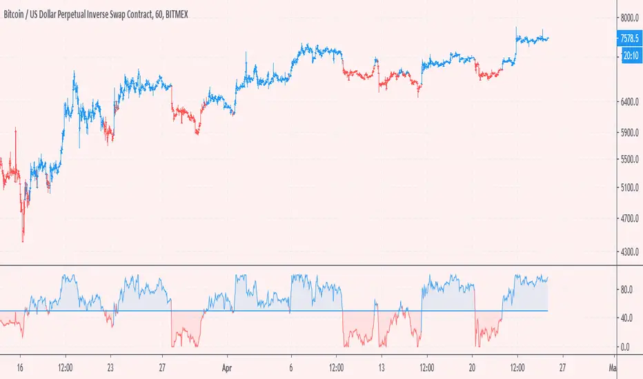 The Num-Day Strength Index was published by Mr.George Angel. low percentage represent bear, high percentage represent bull, and the 50 level is a watershed. In fact, you should adjust the length according to the market, timeframe and trading day. the default is 100 universal.