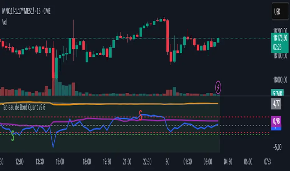 This indicator automatically analyzes the stability of the pair's relationship using two critical filters (a Volatility Ratio filter and a Correlation Z-Score filter). It then provides clear, actionable signals for two opposite strategies based on the current market "regime."
