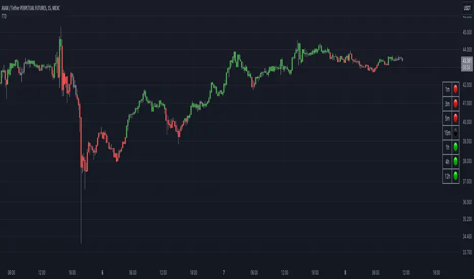 3. Confirmation and Strategy: Consider TTD signals as confirmation for your trading strategy. For instance, in an uptrend, look for long opportunities when the dashboard displays consistent green symbols. Conversely, in a downtrend, focus on short opportunities when red symbols dominate.