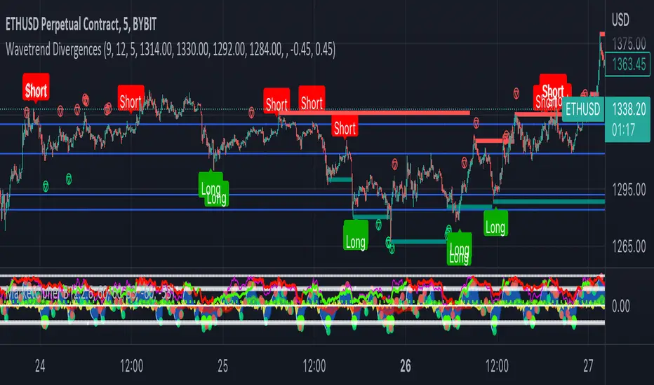 This indicator is partly based on Wavetrend Oscillator by LazyBear / blue momentum waves on MarketCipher B.
