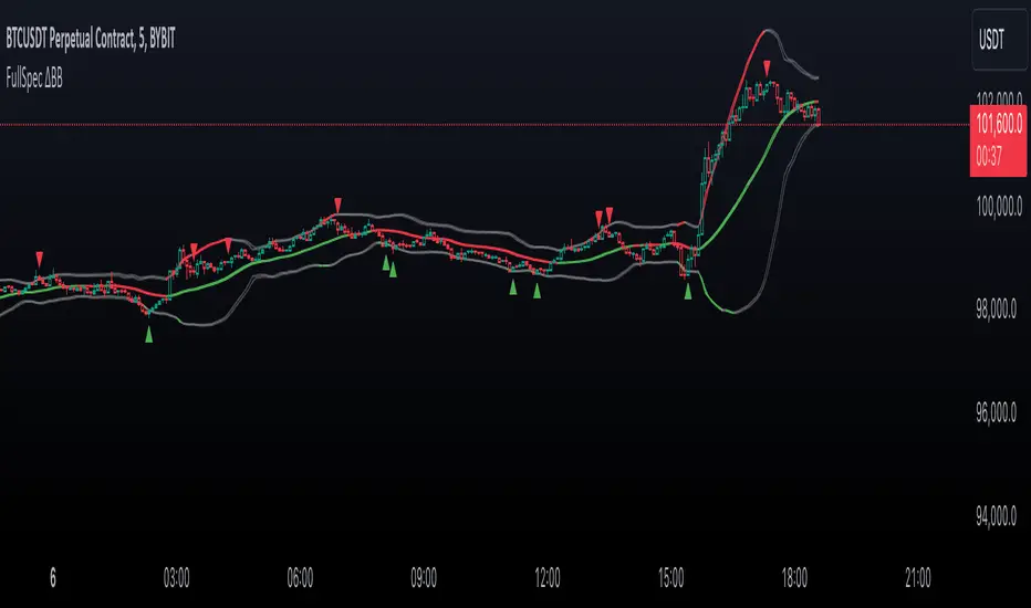 I created the Full Spectrum Delta Bands (FullSpec ΔBB) to go beyond traditional Bollinger Bands by incorporating both OHLC (Open, High, Low, Close) and Close-based data into the calculations. Instead of relying solely on closing prices, this indicator evaluates deviations from the complete bar range (OHLC), offering a more accurate view of market behavior.