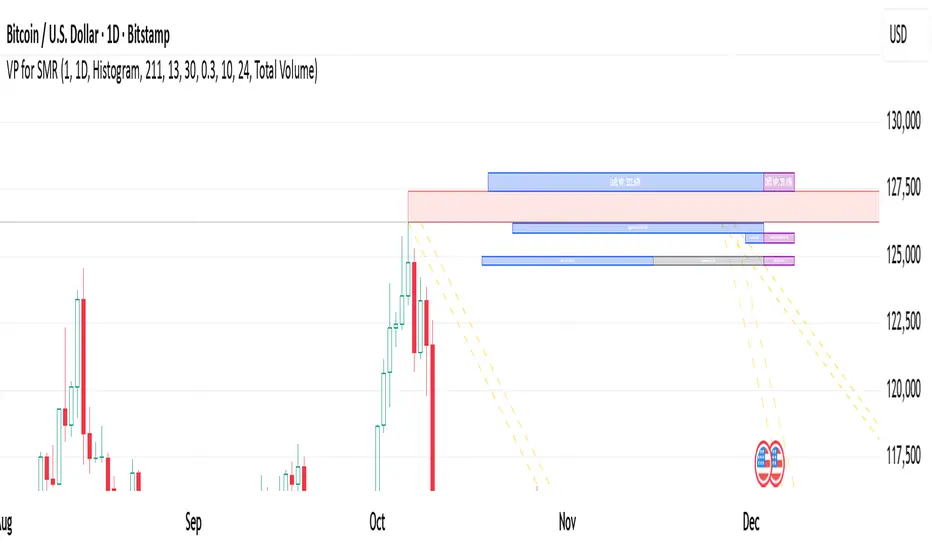 Brief: This indicator is a volume profile and delta volume analysis tool on TradingView, written in Pine Script v6 (with import from the ta/10 library). It focuses on analyzing "Smart Money Range" (SMR) - a candle range (lookback period) to determine trends, extreme points (peaks/troughs), and volume distribution (volume) over time segments and price ranges. The code uses built-in functions such as ta.requestVolumeDelta to get volume delta data from a lower timeframe (customizable), and calculates cumulative delta with resets according to the anchor period (e.g., daily).
