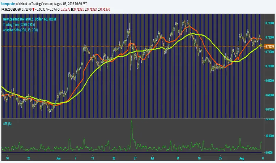 I am working on this adaptive SMA. It has its pros and cons. It is a work in progress and I welcome any one that wants to add or change it. If you add or make positive changes please let me know. It is based off of daily range. Currently it is set to the open three days prior to the current open.
