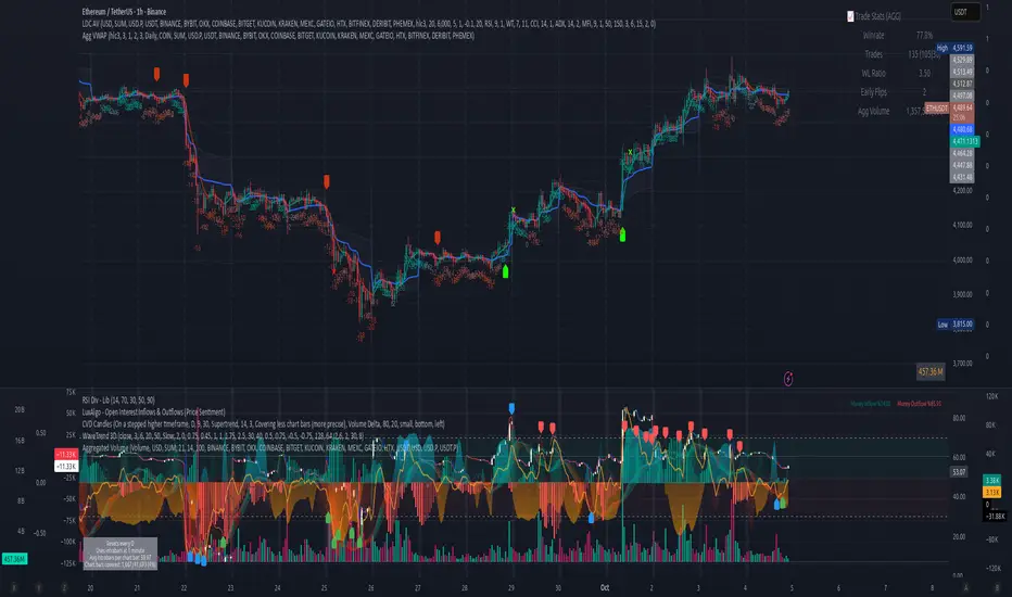 Aggregated volume is calculated from external exchange data using request.security(). Ensure your plan supports the necessary security calls for optimal performance.