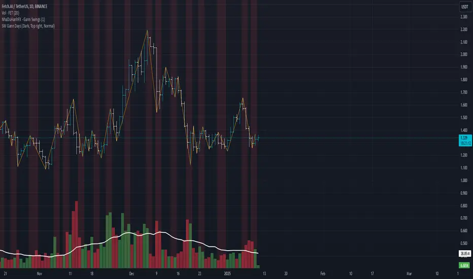 This script highlights these "Gann Days" within a trading chart for 2024 and 2025. The color-coding or background highlighting is intended to draw attention to these dates, so traders can observe the potential for significant market movements during these times. By identifying these specific dates, traders following Gann's theories may gain insights into possible turning points, corrections, or key price movements based on the market's historical behavior around these days.