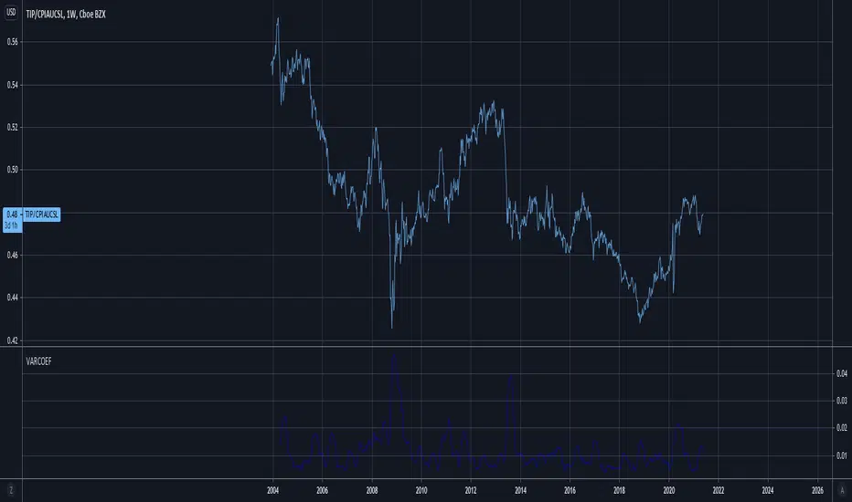 Shows the coefficient of variation defined as standard deviation over mean (for the specified window).