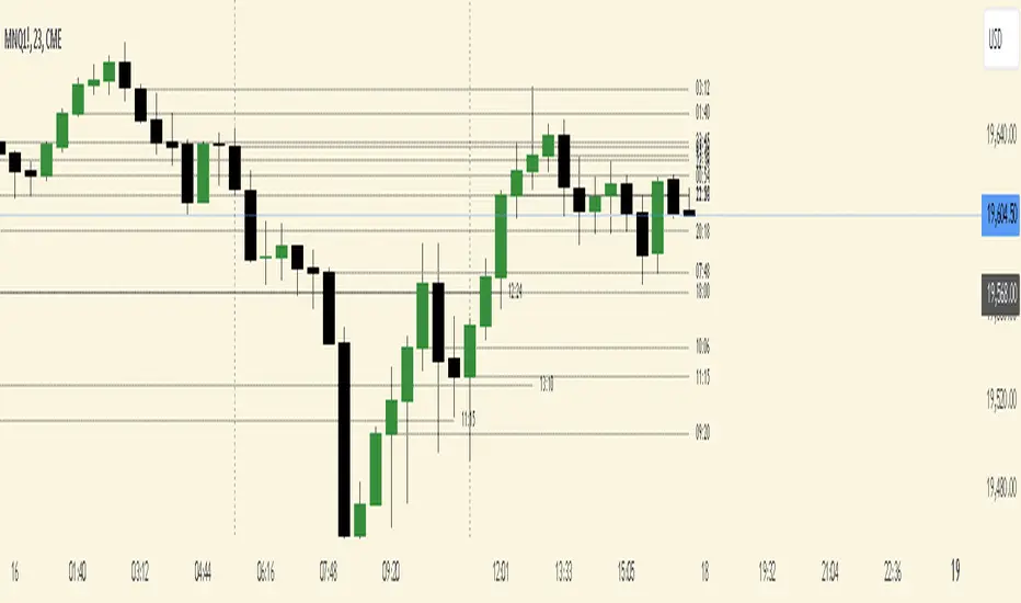 This script allows the user to set 16 custom opening time price lines and labels, as well as 4 vertical lines to delineate times of the day.