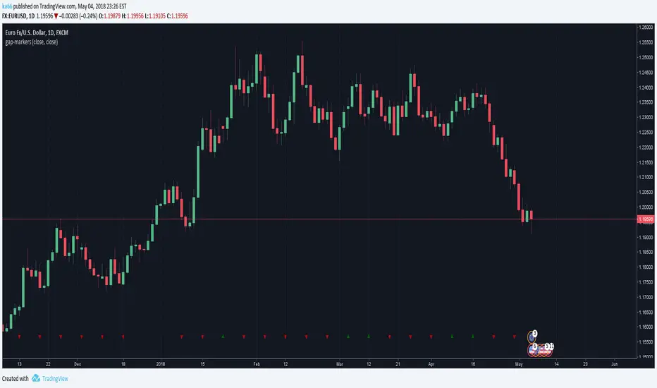 Marks bars having opening gaps, in either direction. Essentially where the opening price != closing price. The reference price defaults to close, but is configurable as an arbitrary source.