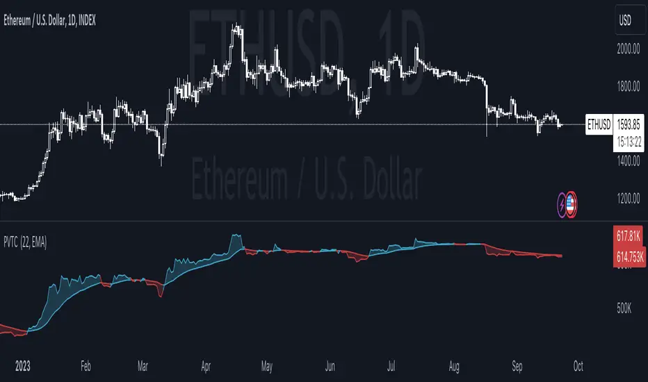 This script is a modified version of the Price Volume Trend (PVT) that uses a moving average of the PVT as a signal (sig) line.