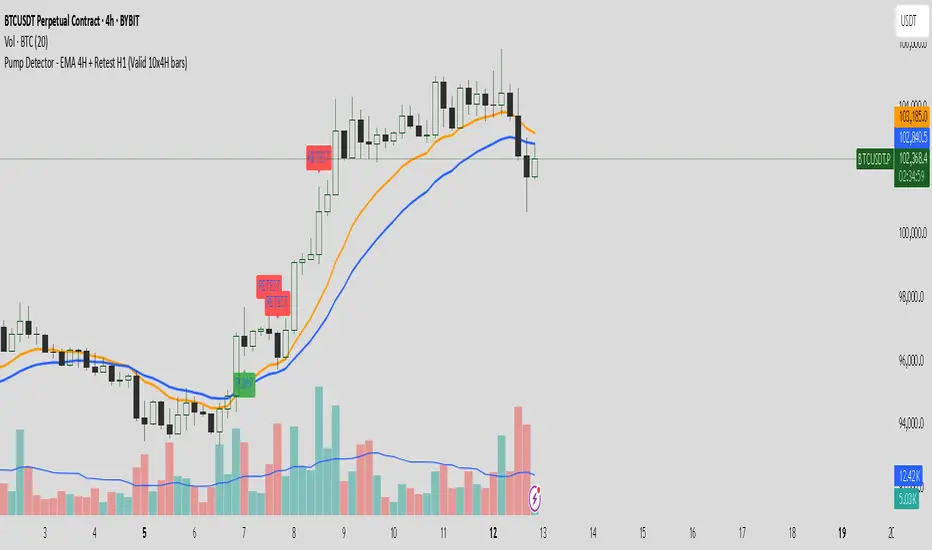 Pump Detector - EMA 4H + Retest H1 (Valid 10x4H bars)