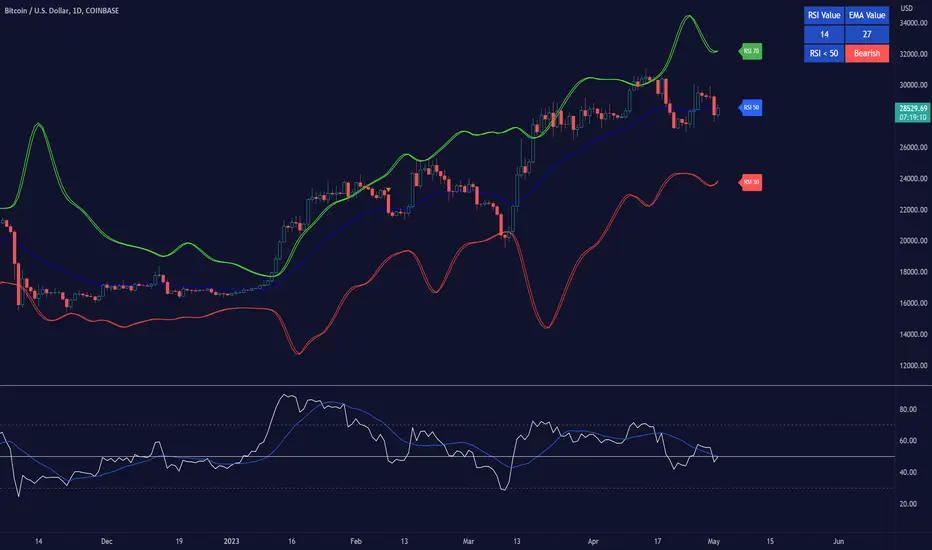 The indicator comes with overbought and oversold bands equal when RSI becomes overbought or oversold.