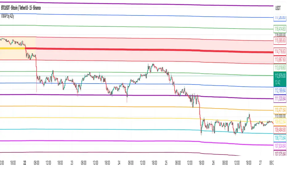 VWAP 12 Bands is a multi-band Volume Weighted Average Price tool designed to map out potential support and resistance levels around VWAP.