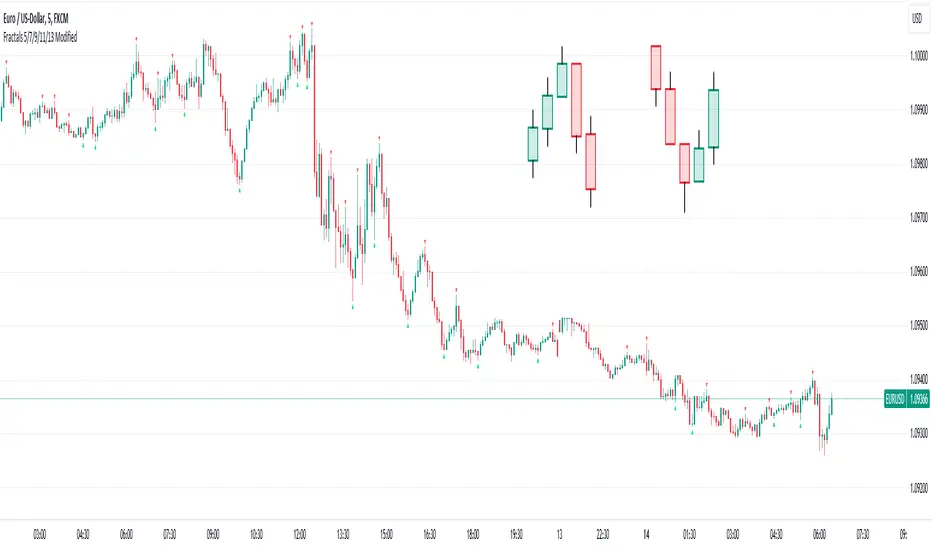 Please note that this Modified Fractals Indicator offers a unique approach to fractal analysis, focusing on specific price patterns that differ from traditional Williams Fractals. It provides traders with an additional tool for identifying potential trend reversals and market opportunities.
