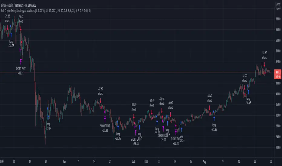 Full Crypto Swing Strategy ALMA Cross with MACD