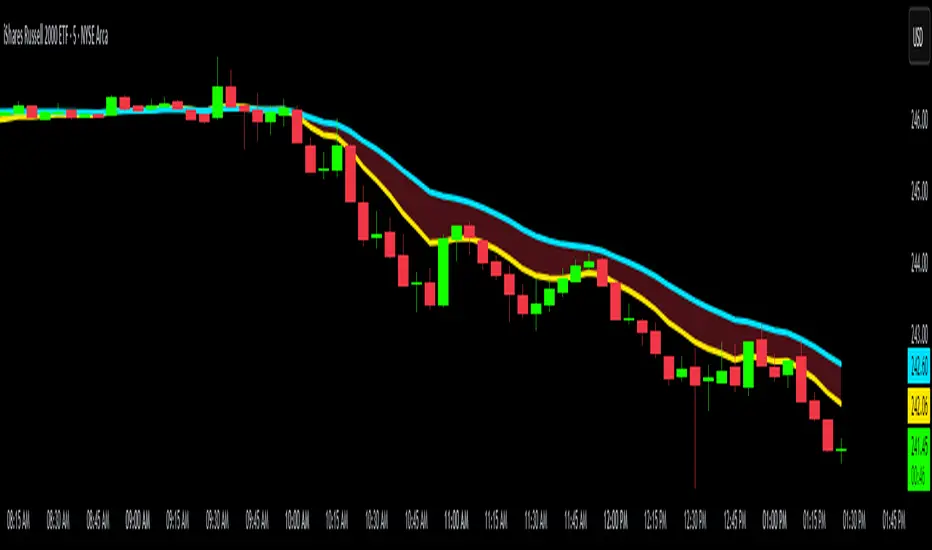 - Dynamic Cloud: Auto-shades bullish (green) or bearish (red) clouds between EMAs for clear trend signals.