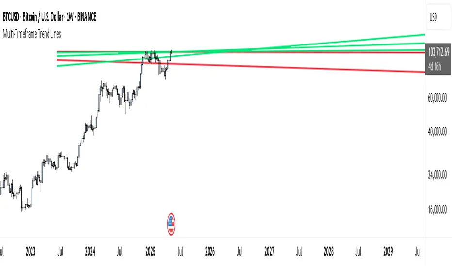 Imagine you're looking at the price of a stock, crypto, or any other asset. You probably know the price can move differently in the short term and the long term. This indicator draws slanted lines to show if the price is generally going up or down over different time periods—like the past 1 minute, 5 minutes, 1 hour, 1 day, or even 1 month.