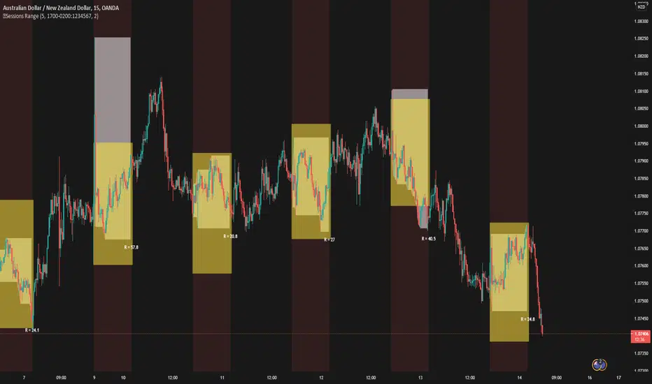 This script averages the range of the previous 5 sessions and displays it on the chart