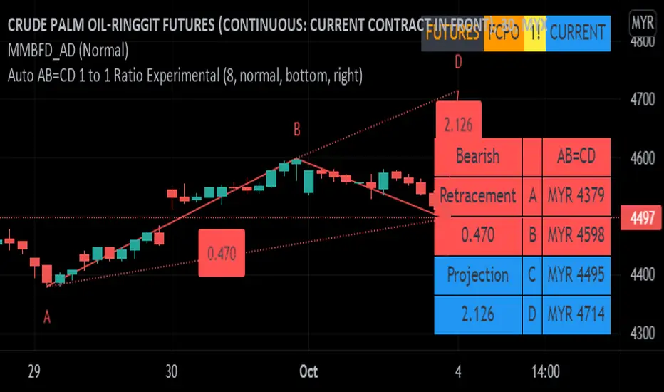 This indicator was experimental based AB=CD, shows last AB=CD either Standard AB=CD or Reciprocal AB=CD which uses time instead of bar_index.