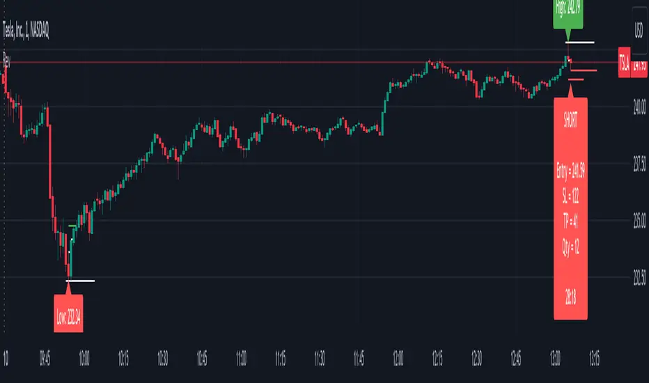 This Reversal Indicator is designed to capture high-probability reversal trades by analyzing price action at the day’s high or low. It identifies key levels, confirms breaks, and provides clear trade entry parameters based on trader margin, offering a simple yet effective approach for managing risk and potential profit. Best timeframe for trading is 1m.