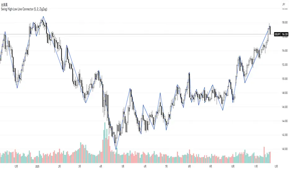 Swing High-Low Line Connector is a simple and intuitive tool that automatically detects swing highs and swing lows using fractal-style pivot logic and connects them with clean, continuous lines. This indicator helps traders visualize market structure, trend shifts, and swing-based support/resistance levels at a glance.