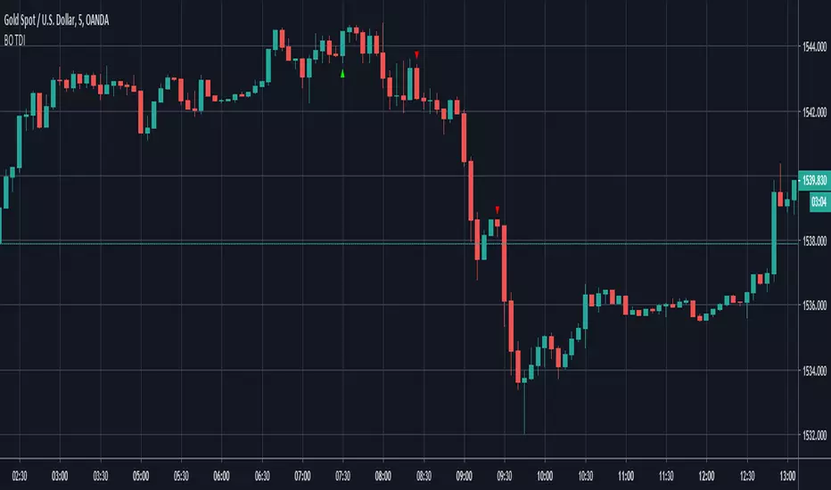 Binary Option strategy based on TDI indicator, Put or Call at the beginning of the next candle, expire 5m for 5m candle.