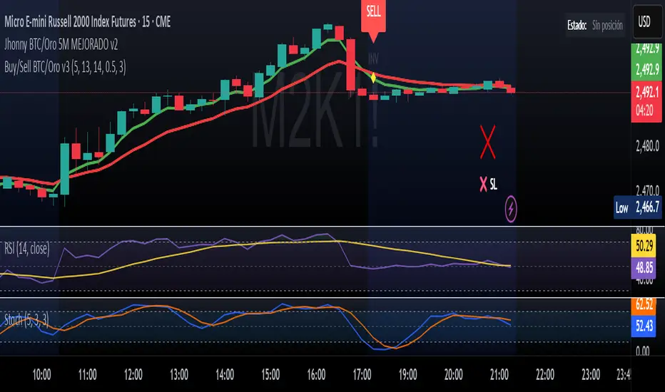 Advanced trading indicator specifically designed for scalping BTC and Gold on 5-minute and 1-hour timeframes. It uses EMA crossovers with automatic risk management (Stop Loss and Take Profit) based on ATR.