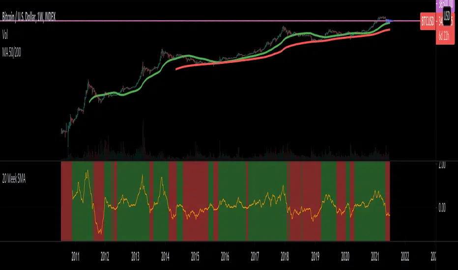 The lower we are the 20-day SMA indicates the bottom is near. The higher we are the 20-day SMA indicates there's the possibility to start climbing down.