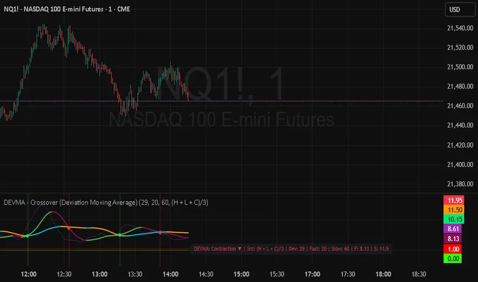 DEVMA isn’t just a moving average crossover. It’s a regime detector that tracks the expansion and contraction of deviation—giving you a real-time readout of when the market’s energy is about to shift. This is the next step for anyone who wants to anticipate volatility, not just react to it.