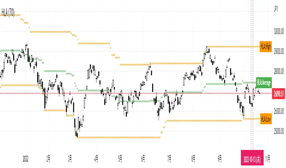 This script extracts the highest price "ta.highest" and lowest price "ta.lowest" over a period of time, obtains the average value "array.avg" and plots it on a chart. At the same time, it also plots high and low prices, so you can use the volatility over a period of time and its center point as a reference for trading. The pine code is as simple as possible, so there is no difficulty. You can also change the period. We sincerely hope that this script will help you in your trading.