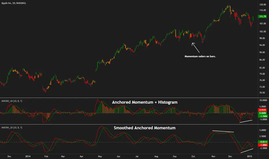 Anchored Momentum (AMOM), by Rudy Stefenel, is a modified momentum indicator to capture the relative momentum. AMOM uses SMA as the reference for deriving momentum, thereby anchoring it to that MA rather than "value of close n bars back".