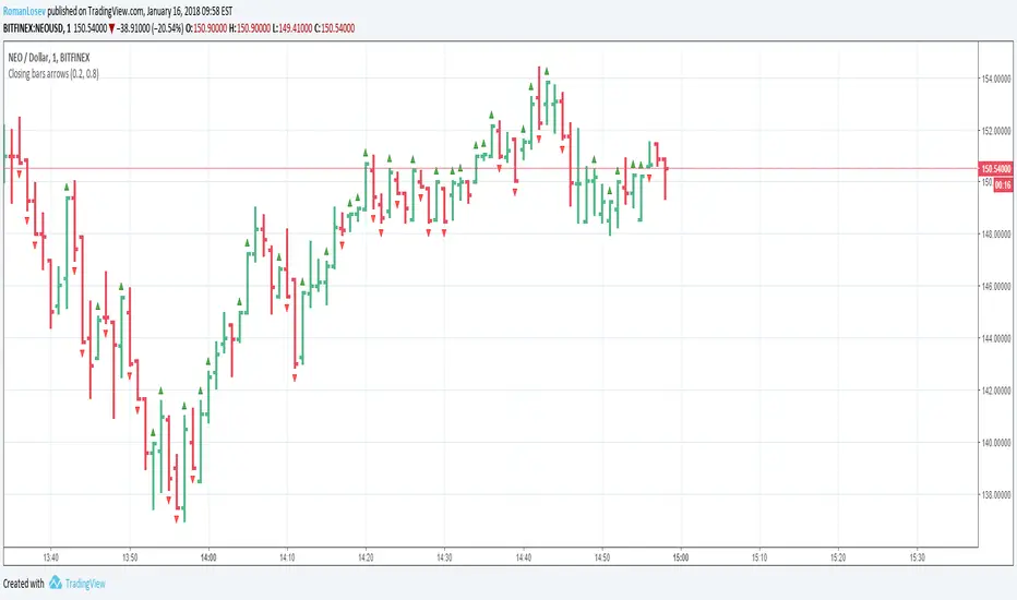 Triangles will appear if close prices is in a above 80% or below 20% of tick price bar.