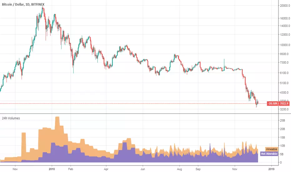 This indicator shows you the dynamic 24h total volume charts of the mineable and not mineable cryptocurrencies from TOP-40 according to coinmarketcap.com.