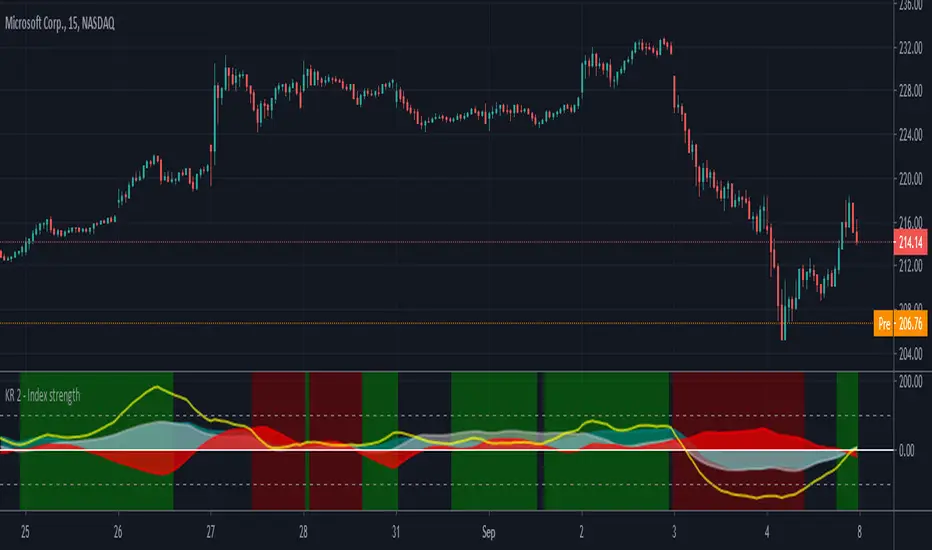 The background color changes based on the market strength combined with the active symbol true strength. Green is a buy zone, Red is a sell zone.