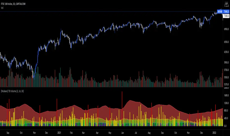 True Bar Volume, or TB Volume, is an indicator that measures the volume against the price action that has occurred.