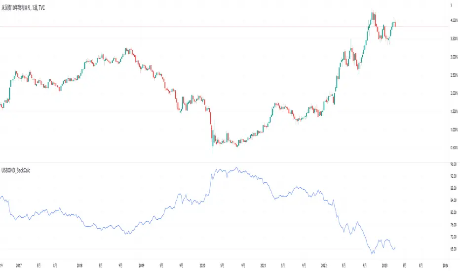 米国債の利回りから債券価格を求める。