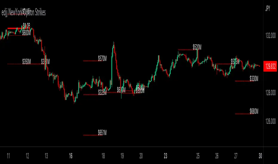 edjj NewYork Option Strikes is a membership-only weekly issued pinescript that displays New York option strikes and their amounts, including: