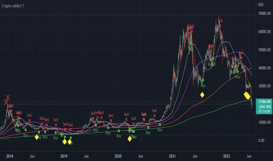 Green Line - This MA line indicate the bottom of the cycle - your absolute best entry point for the next cycle. This MA got a 10-year accurate record.