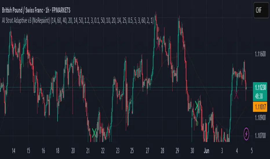 Below is a fully self-contained, English-language description of every input, function, and logical block inside the “AI Strat ATR Dinamico + ADX + Trend Adaptivo (No Repaint)” indicator. You can copy and paste this into TradingView’s “Description” field when you publish, without exposing any Pine code.