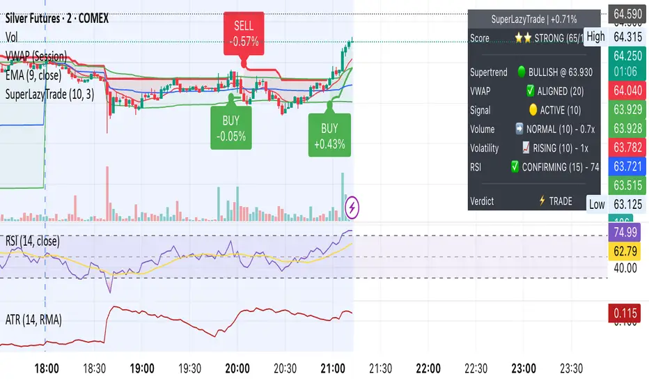 SuperLazyTrade transforms SuperTrend into a professional day-trading system with intelligent quality filtering.