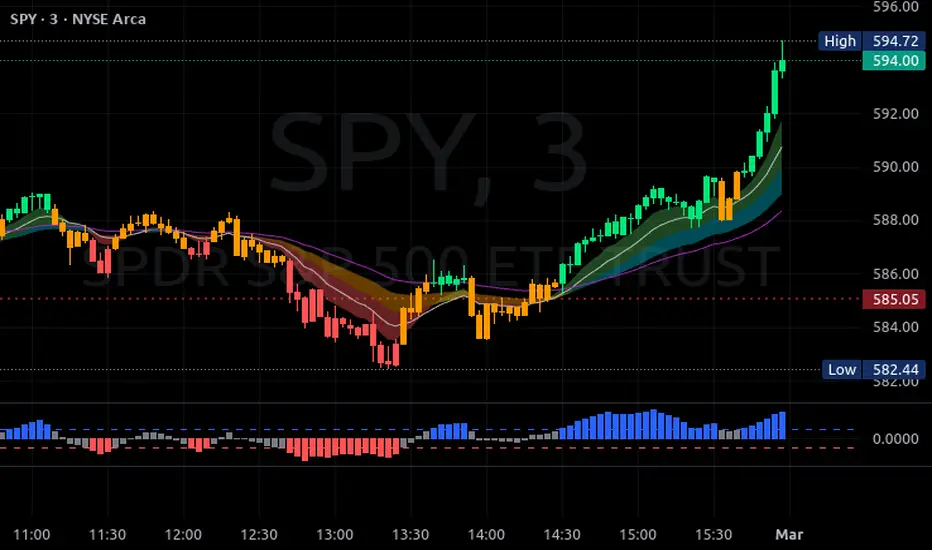 This script displays a QQE-based momentum histogram, derived from the RSI line’s deviation around a neutral 50 level. It uses a smoothed RSI, monitors volatility with a dynamically adjusted multiplier, and then plots a color-coded histogram that helps traders see when the RSI is entering strong bullish or bearish territory: