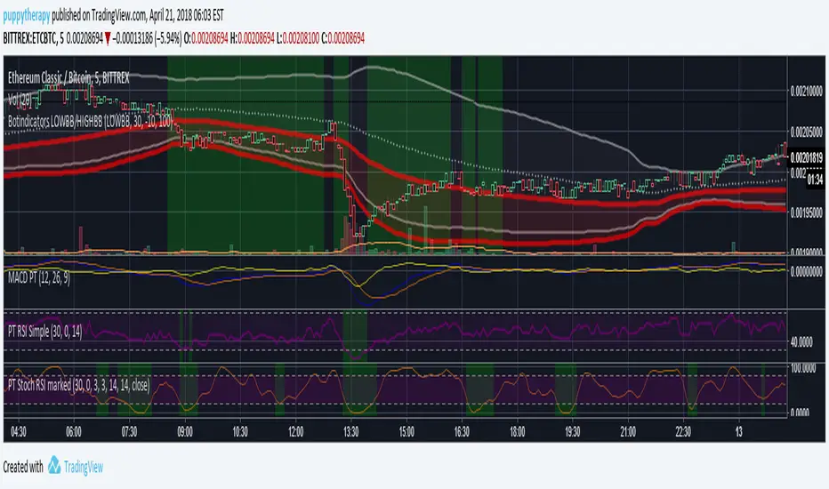 You can now use multiple timeframes. Just check the checkbox and select the timeframe you want. Example you want to use 15 minute lowbb only if a StochRSI is oversold on an hour timeframe.开源脚本
