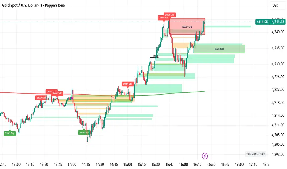 Sell: Wait for price to enter a Red Bear OB. Look for a "Smart Sell" label.