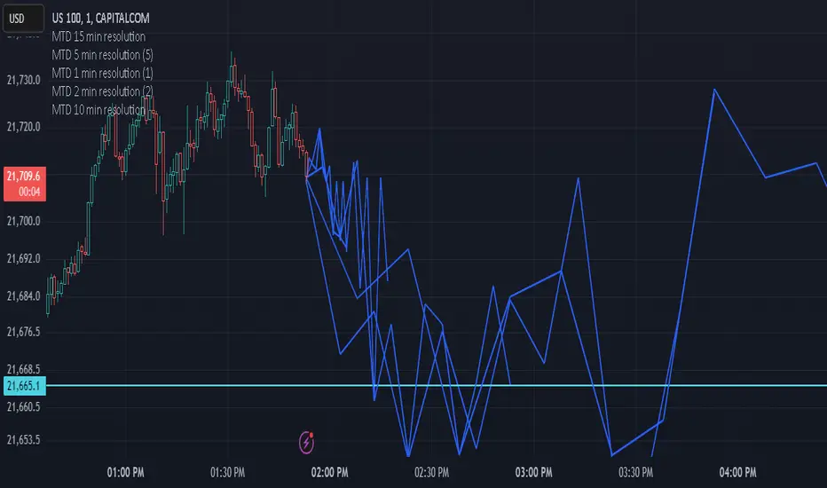 Purpose: This indicator is intended for use as an analytical tool to forecast potential future price levels based on multi-timeframe dynamics. It is not a trading signal generator and should not be used as the sole basis for any trading decisions.