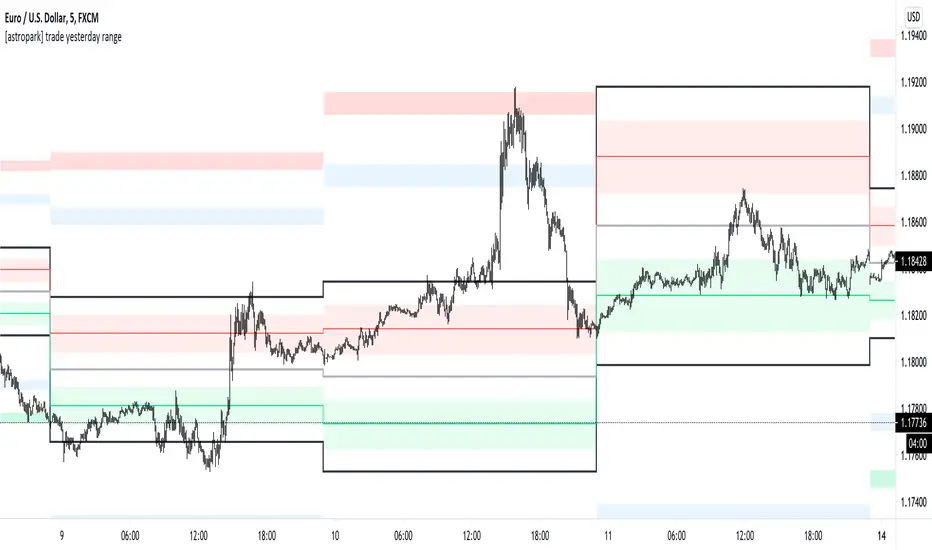 Each day the indicator will print some important levels and ranges related to the trading day before: